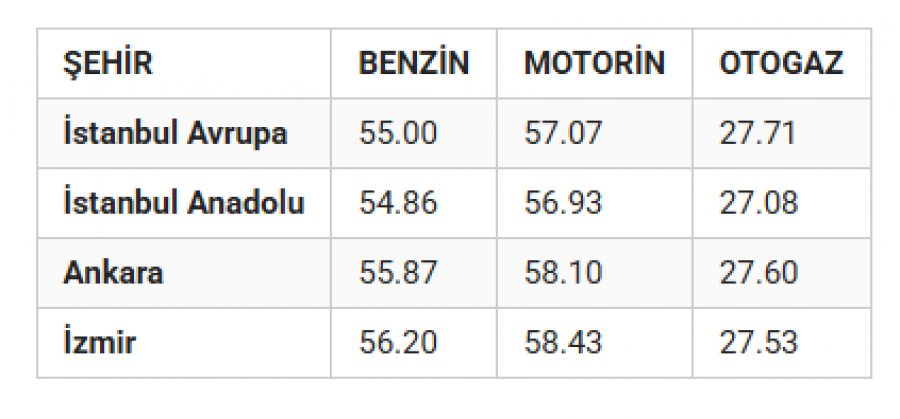 27 KASIM GÜNCEL AKARYAKIT FİYATLARI