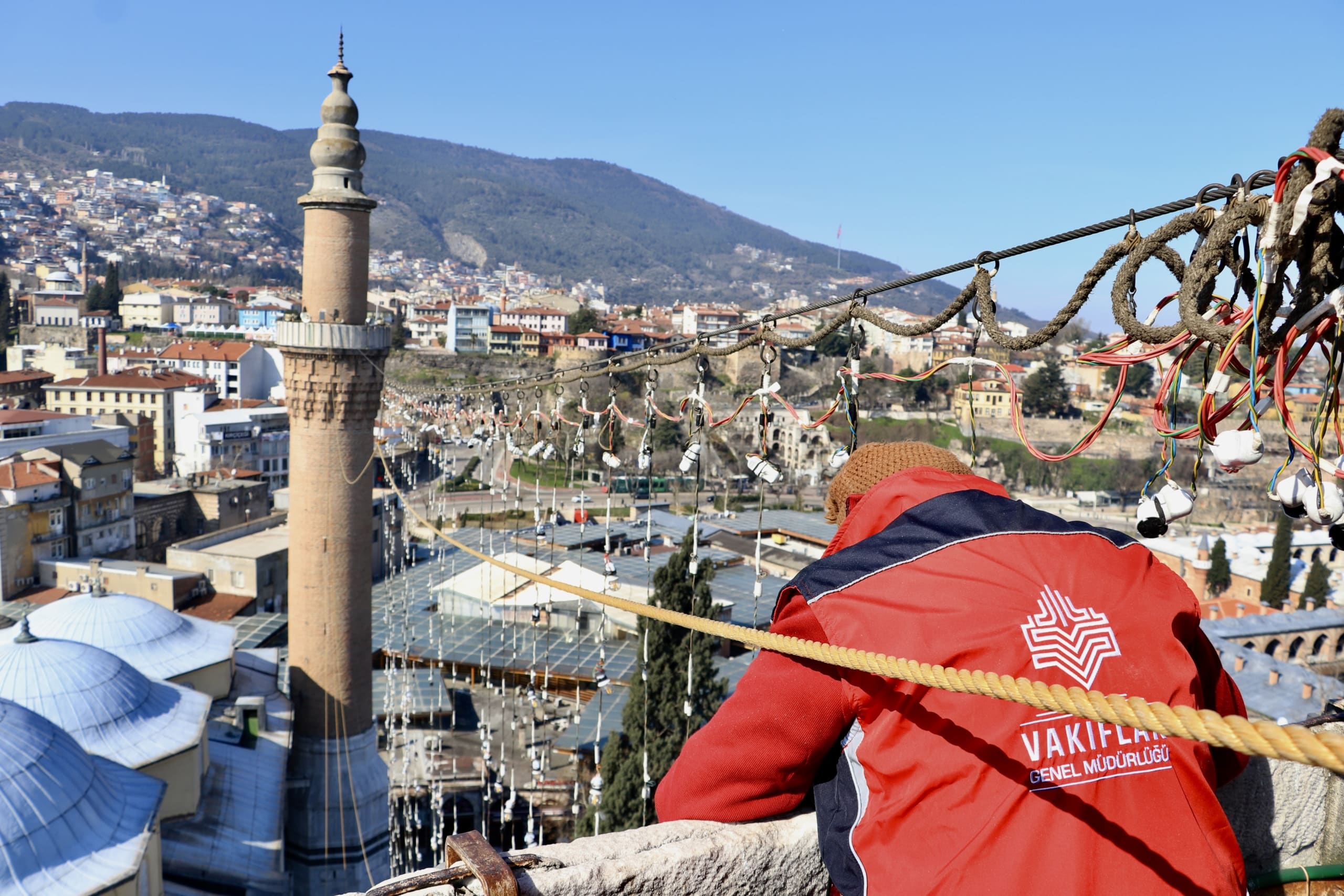Vakıflar Bölge Müdürlüğü koordinesinde asılan yeni mahya, 8 Mart akşam ezanıyla birlikte ilk kez yanacak. “Zekat Berekettir” mesajı, ramazan ayının sonuna kadar Ulu Cami’nin minareleri arasında asılı kalarak Bursalılara ve ziyaretçilere manevi bir hatırlatma yapacak.