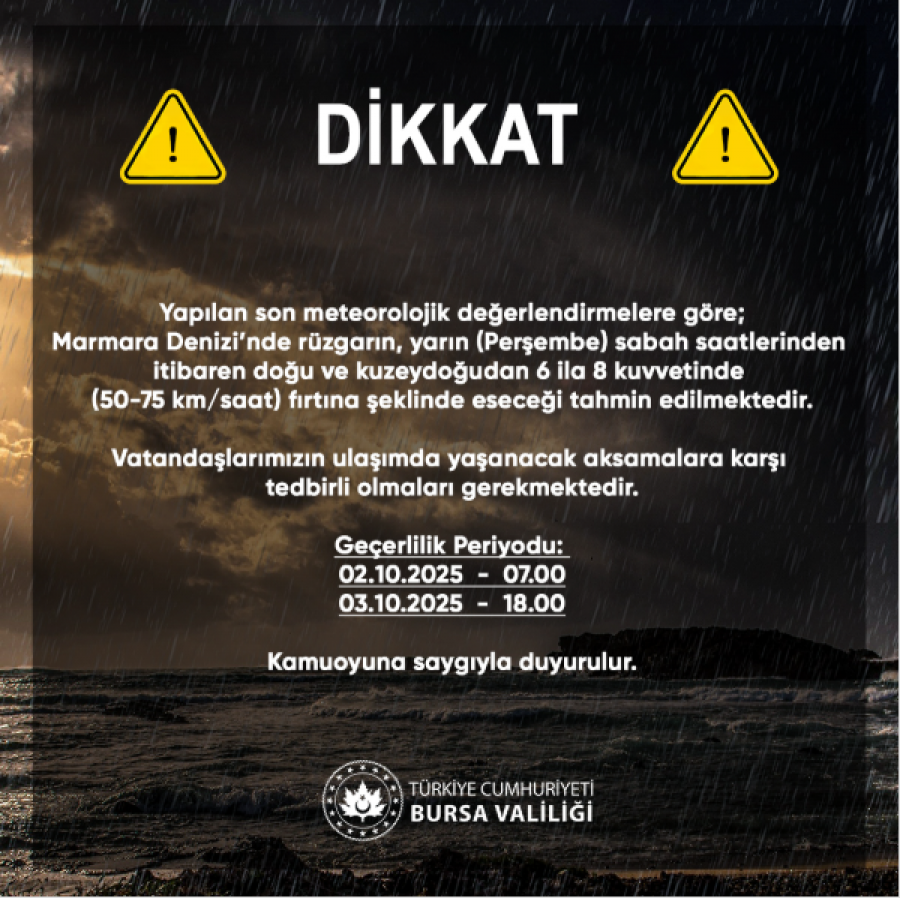 Bursa Valiliğinden fırtına uyarısı geldi…