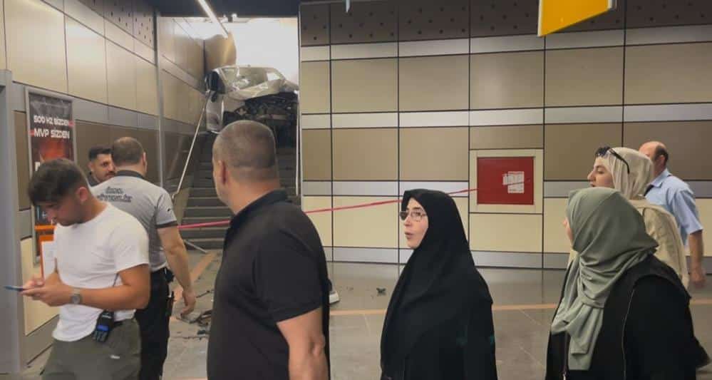 Direksiyon hakimiyetini kaybeden sürücü, kontrolden çıkan araçla önce aydınlatma direğine çarptı ardından Bağlarbaşı Metro İstasyonu’na girdi.