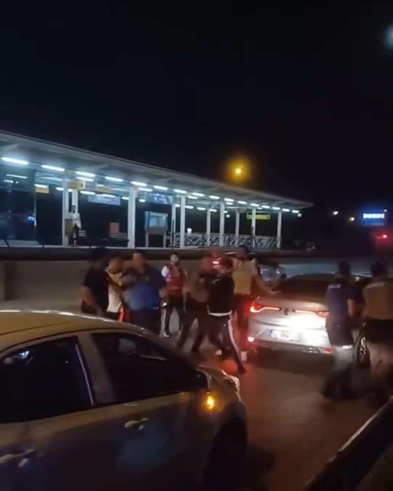 Trafiğin kilitlenmesine neden olan olayda çevredekiler büyük panik yaşadı. İhbar üzerine olay yerine gelen bekçi ve polis ekipleri taraflara müdahale ederek kavgayı sonlandırdı.