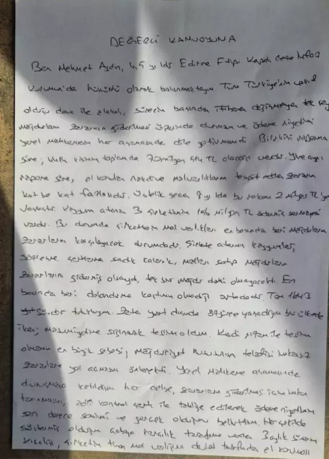 Mehmet Aydın mektubunda ayrıca, 4 bin 414 mağdurun toplam alacağının 70 milyon 514 bin TL olduğunu, el konulan mal varlıklarının bu tutarın katbekat üzerinde bulunduğunu ve kayyum atanan 3 şirketin toplam 156 milyon TL sermayeye sahip olduğunu ifade etti.