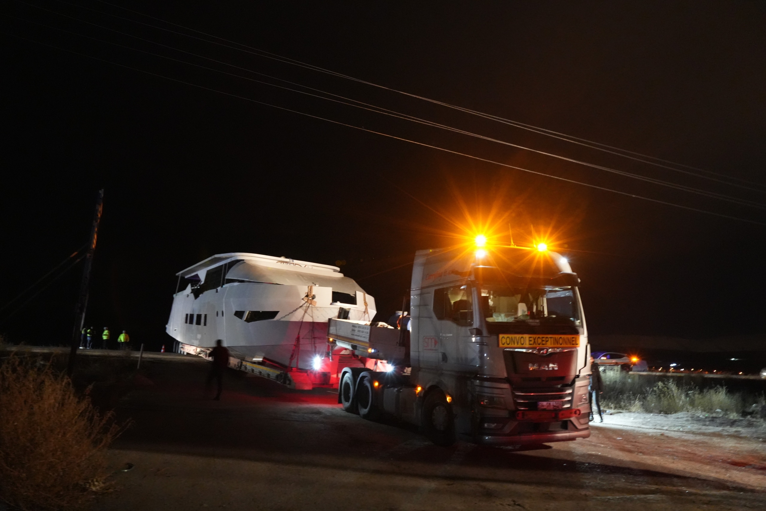 Birkaç kilometre sonra uygun manevra alanı bulan yat yüklü tır, karayolunun ortasında stop etti.
