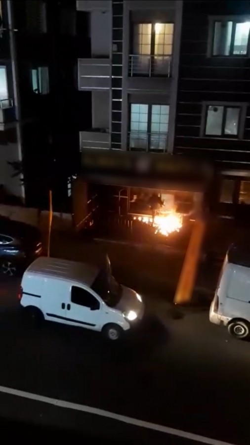 Olayın ardından aracına binen Engin T. olay yerinden uzaklaştı. Yaklaşık yarım saat sonra dükkan önüne yeniden gelen Engin T., aracından inerek dükkanın girişine 3 kez yanıcı madde attı. Engin T. ardından alevlere teslim olan dükkanın giriş kapısını tekmeledi. Halıların alev aldığını ve alevlerin dükkana ulaştığını gören çevredeki vatandaşlar kovalarla su dökerek yangını söndürdü. Olay anı güvenlik kamerasına saniye saniye yansıdı. Olayın ardından aracına binen Engin T. hızla kaçmaya başladı.