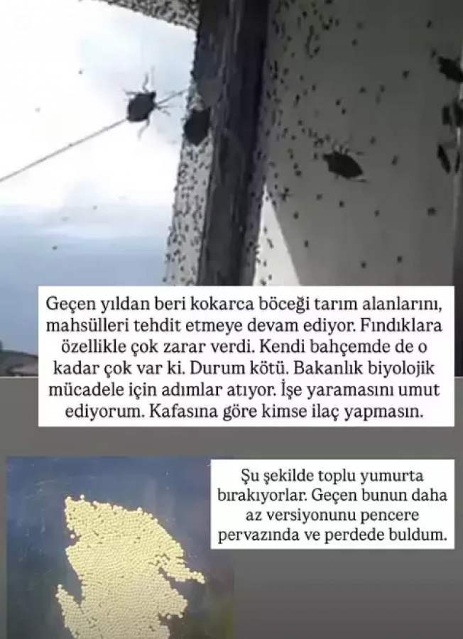 “Dünyanın sonunu getirecek böcek” olarak anılan kahverengi kokarca böceği yeniden Türkiye‘nin gündeminde. Kış uykusundan çıkan istilacı tür, Sakarya, Samsun, Trabzon ve Giresun başta olmak üzere birçok ilde evleri ve tarım alanlarını sardı. Uzmanlar, tüm Türkiye’yi uyarıyor.