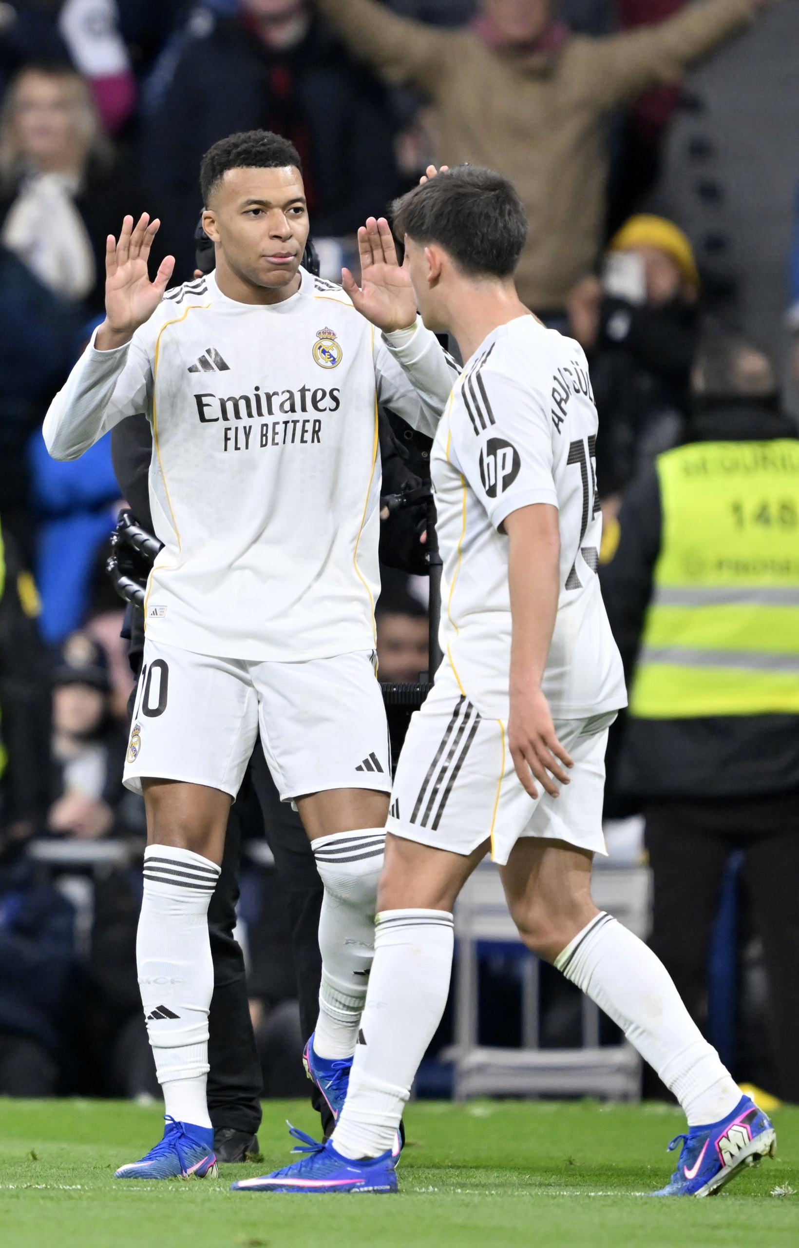 Santiago Bernabeu’da oynanan maçta Real Madrid taraftarları, kulüp yönetimine ve bazı oyunculara sert tepki gösterdi. Başta Vinicius Jr., Jude Bellingham ve Federico Valverde olmak üzere bazı futbolcular ıslıklandı, tepki gösterildi. Ancak Mbappe ve Gonzalo Garcia’ya taraftarlar destek verdi.