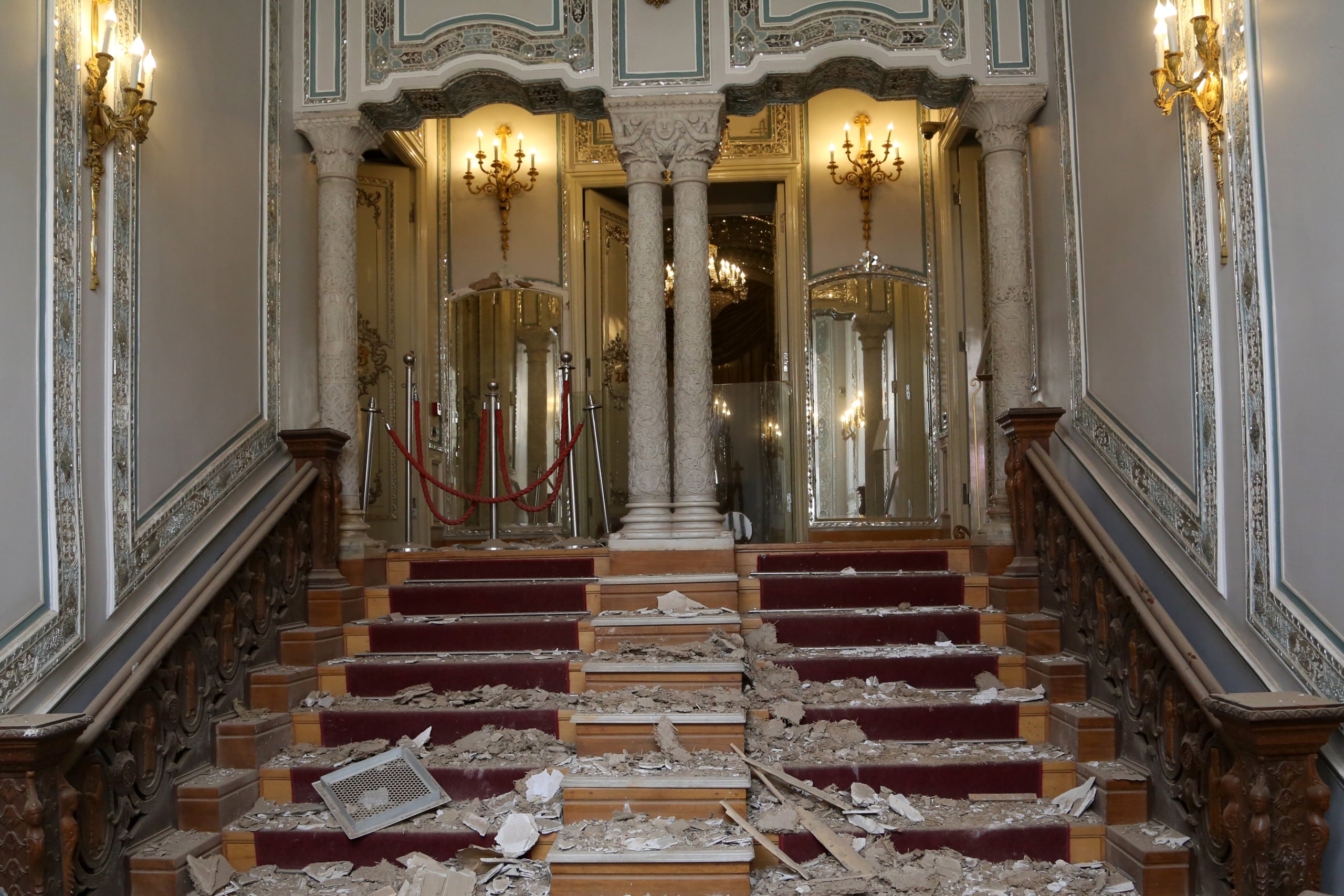 Yeşil Saray ve Beyaz Saray (Millet Sarayı): Kompleksin en ünlü müzelerinin kapı ve pencereleri tamamen kırıldı.