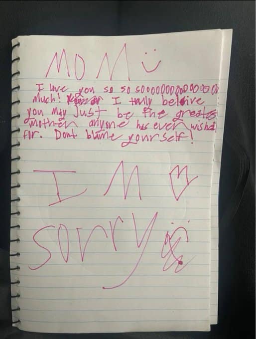 “Anne, seni çok ama çok seviyorum. Gerçekten inanıyorum ki sen, herkesin sahip olmayı isteyeceği en harika annelerden birisin. Kendini suçlama. Üzgünüm.”