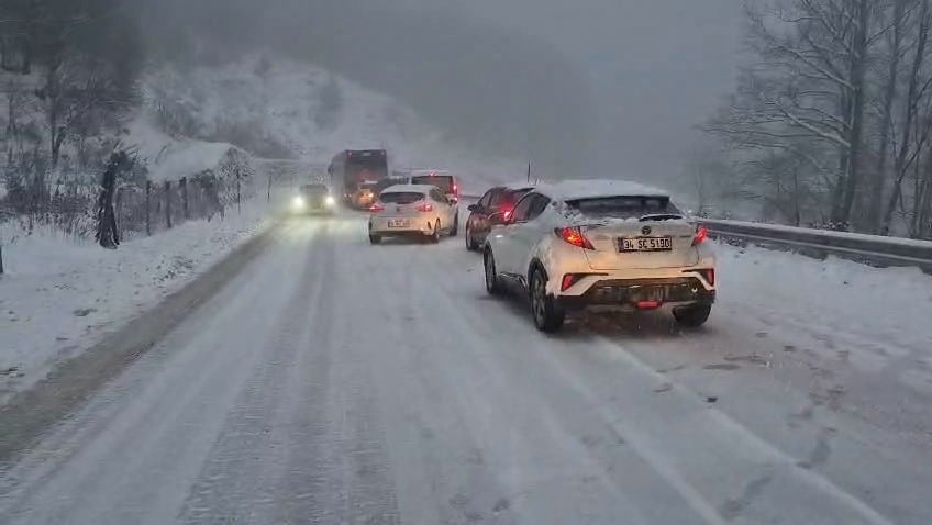 Günübirlik ziyaretçilerin de katılmasıyla yoğun hareketlilik yaşanan bölgede doyasıya eğlenen tatilcilerin geri dönüşü, kar lastiği ve zinciri olmayan araçlar nedeniyle çileye dönüştü.