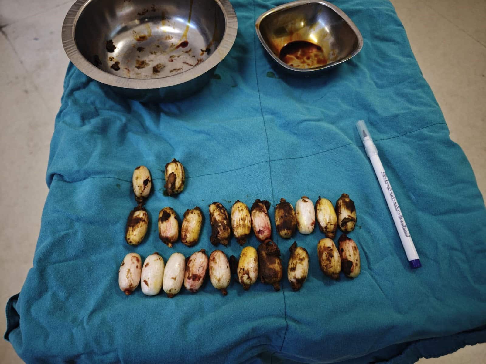 Eskişehir Cumhuriyet Başsavcılığı’nın talimatıyla cerrahi müdahaleye alınan S.A.’nın midesindeki 44 kapsül çıkarıldı.